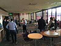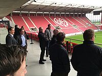 "Es ist einfach fazinierend wie Infrastrukuren konzipiert werden, die 14 Tage ruhen und dann für ein paar Stunden das Zentrum der Digitalisierung in Rheinhessen werden!" So begrüsst der Vorsitzende Matthias Memmesheimer Teilnehmer in der Loge des Stadiums, wo Gastgeber Karsten Lippert, Leiter Digitalisierung bei Mainz05 einen Einblick in die Anforderungen und die Lösungen einer Bundesliga IT gewährte.